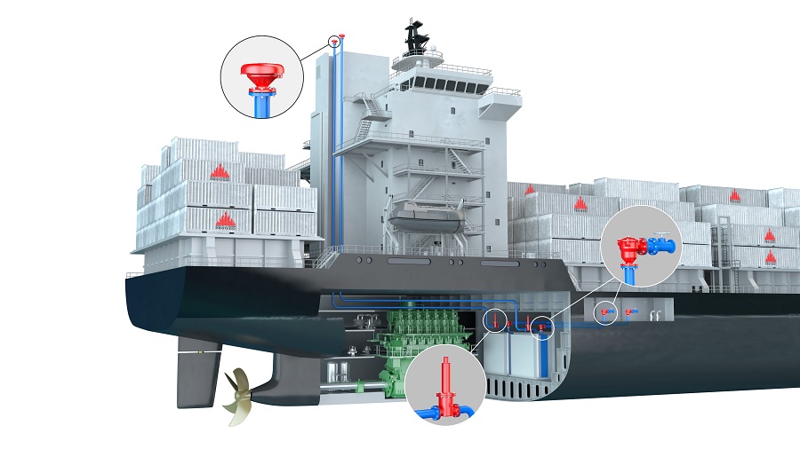 - Storage tanks in the hull of the ship are protected with Pressure and Vacuum Relief Valves PROTEGO® DV/ZT-F.