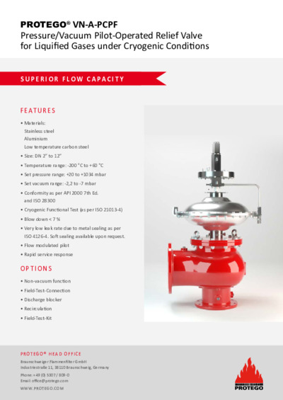 PROTEGO® VN-A-PCPF/PCPM-NV, Pressure/Vacuum Pilot-Operated Relief Valve for Liquified Gases under Cryogenic Conditions
