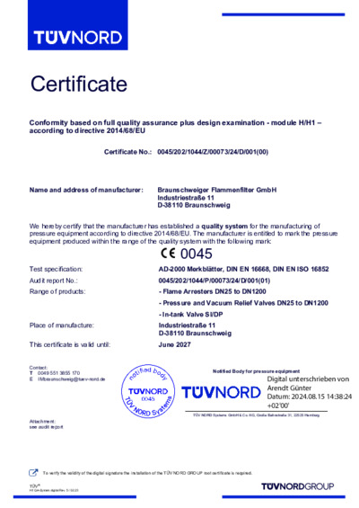 Safe Protection of Storage Tanks with Pressure / Vacuum Relief Valves and Flame Arresters - 483 KB