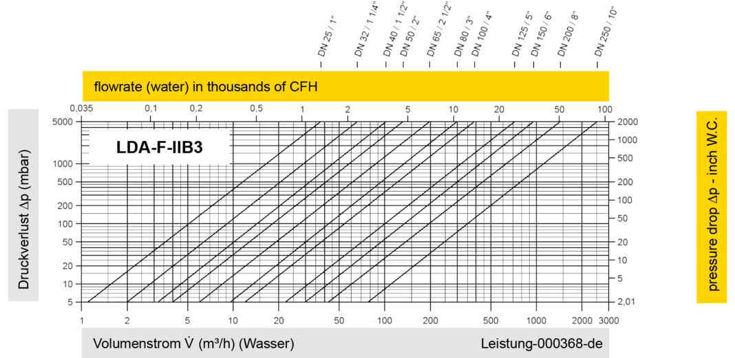 Zur Auswahl der Nennweite (DN) benutzen Sie bitte das Volumenstromdiagramm auf den folgenden Seiten