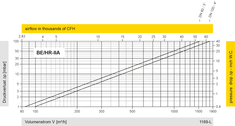 Diese Volumenstromdiagramme sind mit einer kalibrierten und TÜV-zertifizierten Strömungsmessanlage ermittelt worden. Der Volumenstrom V in m³/h bezieht sich auf den technischen Normzustand von Luft nach ISO 6358 (20°C, 1bar). Umrechnung auf andere Dichte und Temperatur siehe Kap. 1: Technische Grundlagen.
